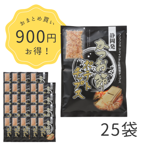 ※おまとめ買い大好評につき、かつお節ポテトチップス×25袋(1ケース)は、セール特価8,100円(1袋あたり324円)となります。
